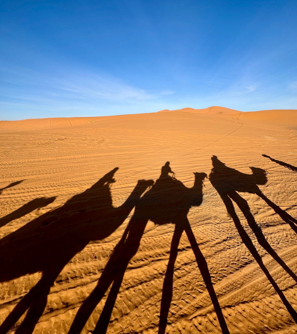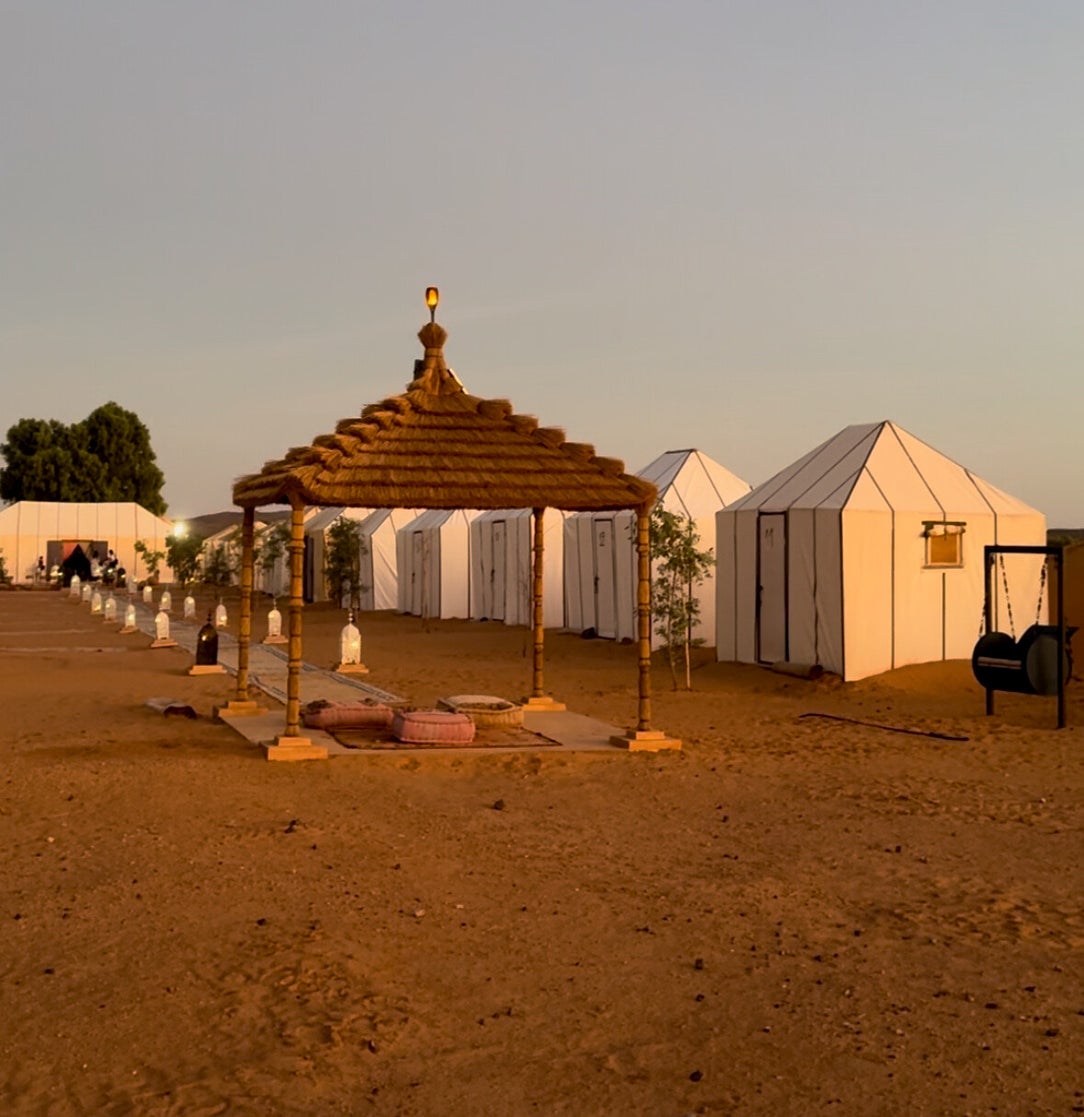 Una vez en Merzouga, nos adentramos en el Desierto de Erg Chebbi (o Desierto de Merzouga) en camello, una de las experiencias más mágicas del viaje.